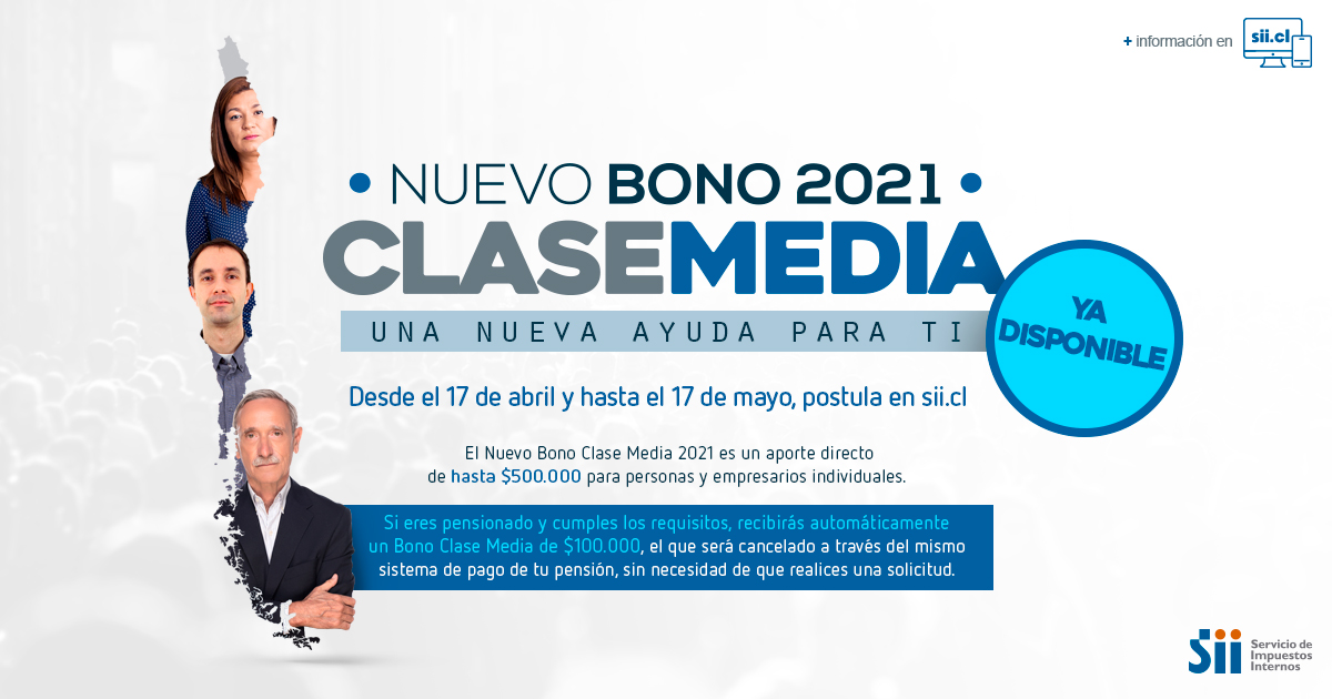 El Servicio de Impuestos Internos SII anunció que los trabajadores que tuvieron ingresos solo durante algunos meses de 2019 por ejemplo por encontrarse con licencia medida ahora también podrán solicitar el bono de 500000 si es que cumplen con los requisitos. Todo sobre Nuevo bono clase media. SII_Chile hola buenas tardes. En el estado de mi reclamo del bono clase media 2021 dice que la respuesta fue enviada a mi correo y no me a llegado nada y en el portal mi sii tampoco.